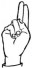 На ћирилици написано КОНСТАНТИН КРГА састоји се из 14 слова [?]. Исписано ћириличном једноручном азбуком за глувонеме: